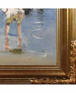 La Pastiche By Overstockart Children Playing At The Seashore With Florentine Frame, 27 X 31