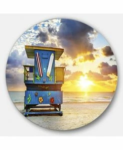 Design Art Art ‘Miami South Beach Sunrise’ Disc Large Seashore Metal Circle Wall Art – 36 X 36