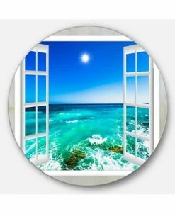 Design Art Art ‘Open Window To Wavy Ocean’ Extra Large Seashore Metal Circle Wall Art – 36 X 36