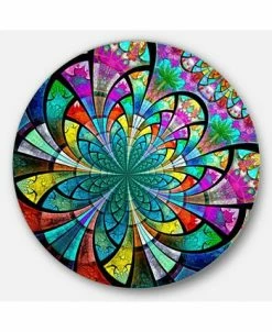 Design Art Art ‘Multi Color Large Fractal Flower Pattern’ Floral Metal Circle Wall Art – 23 X 23