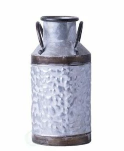 Vintiquewise Rustic Farmhouse Style Galvanized Metal Milk Can Decoration Planter And Vase, Small