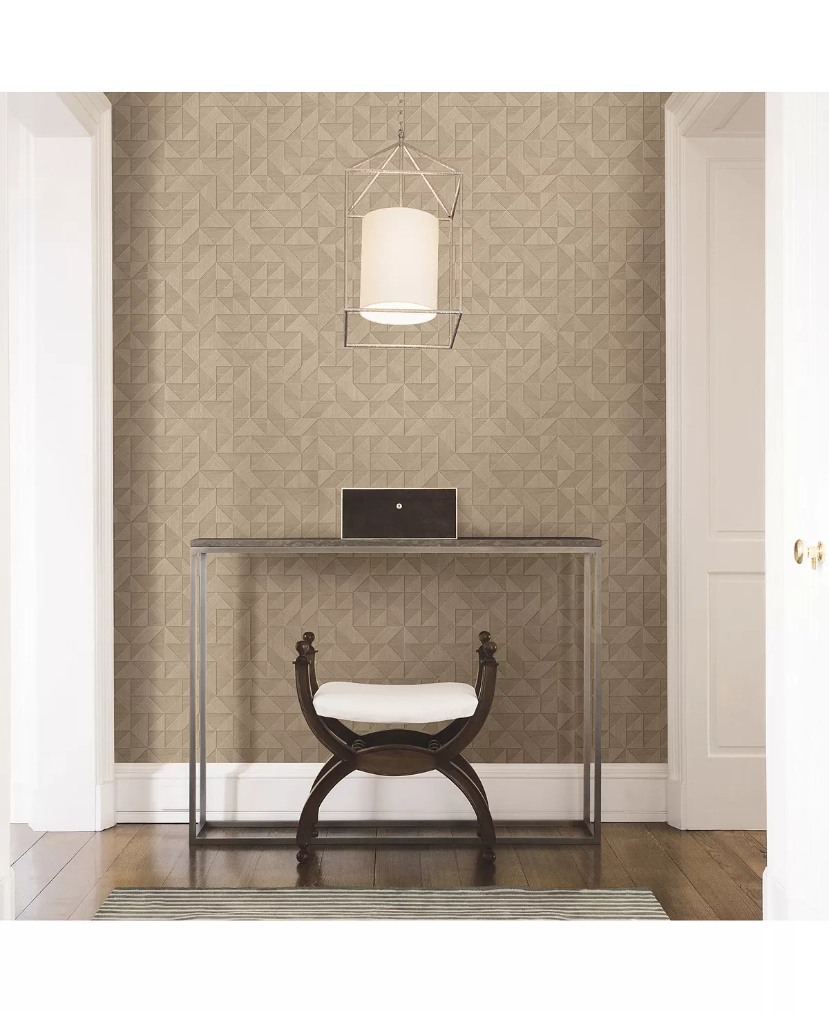 With pleasant beige and khaki hues, this modern wallpaper has a timeless style. Its wood inspired design and textured elements create a dimensional geometric print. Gallerie is an unpasted, non woven wallpaper.
