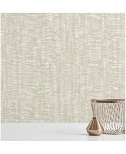Weathered strokes are layered on top of a fabric inspired background in this dimensional print. Its neutral color palette is accented by subtle pink undertones. Morrum is an unpasted, non woven wallpaper.