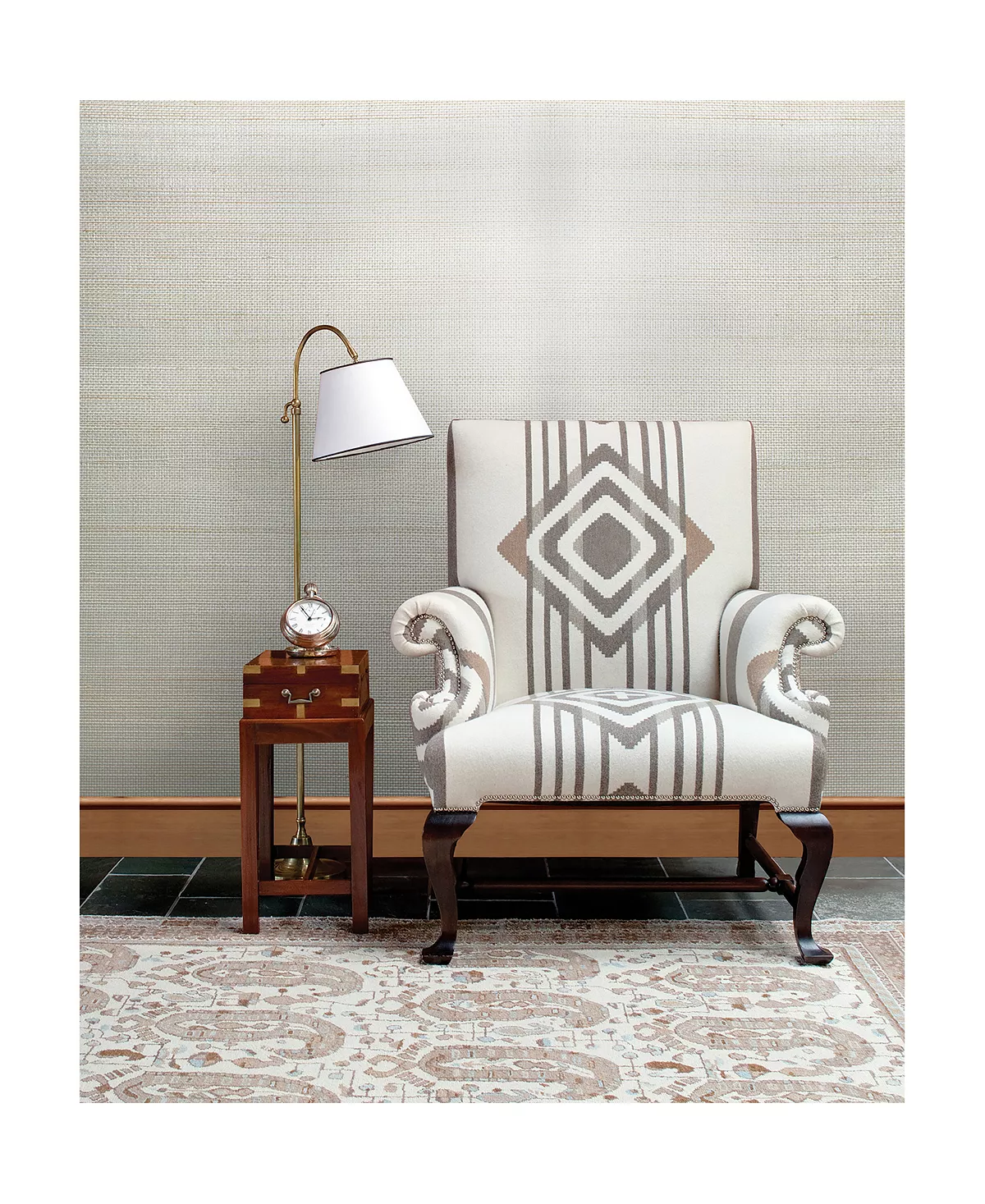 A finely woven grasscloth wallpaper with a dazzling metallic background. The glow of champagne and wheat hues will add a sophisticated warmth to rooms. Pearl river is an unpasted, paper backed wallpaper.