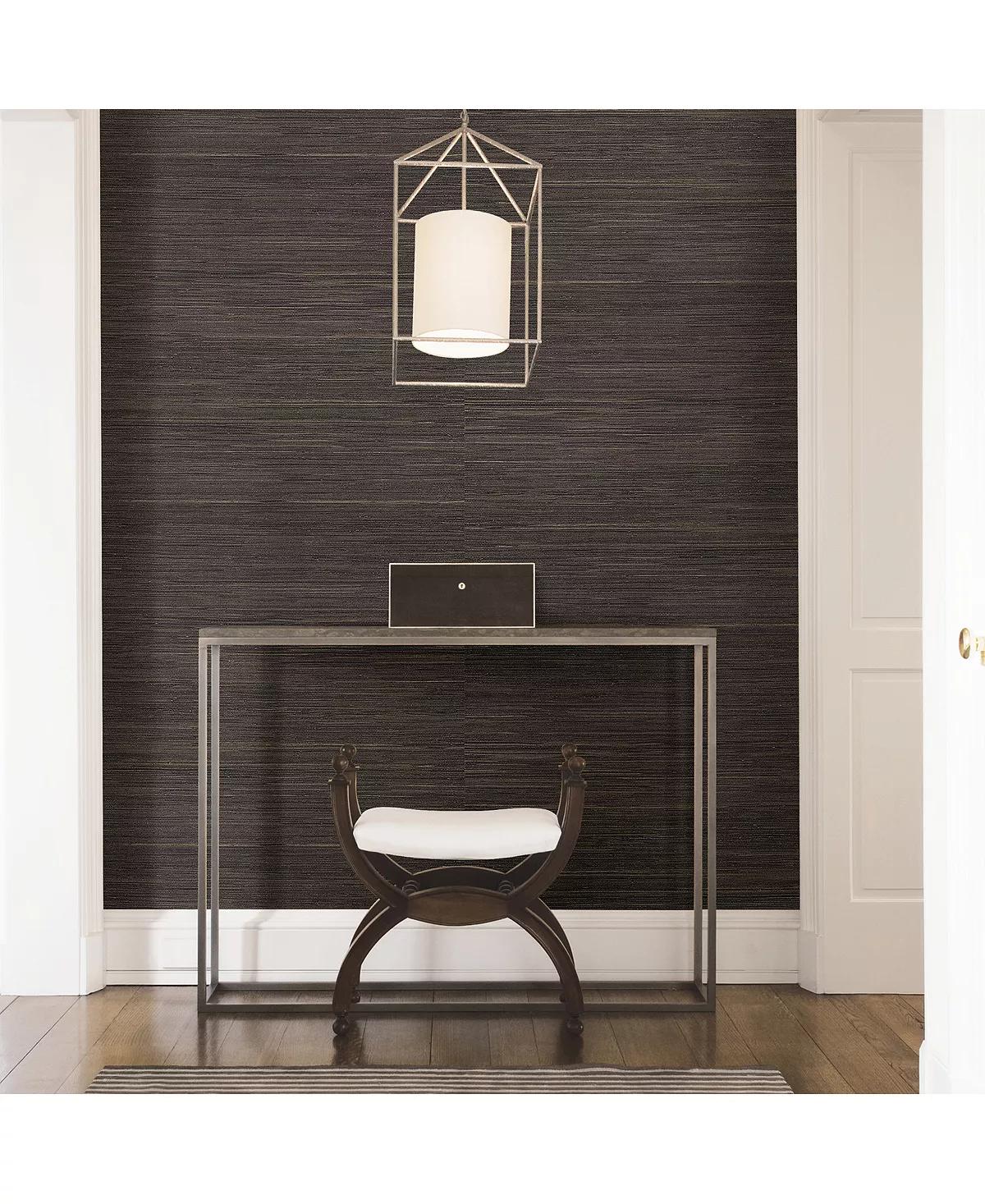 Adorn your walls with this rich chocolate grasscloth. Its beautiful dark brown and tan woven design is accented by silvery details. Shandong is an unpasted, paper backed wallpaper.