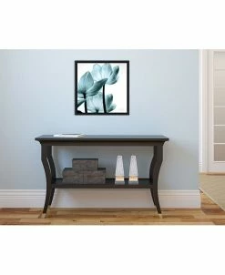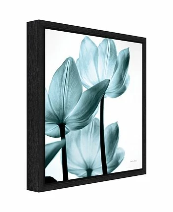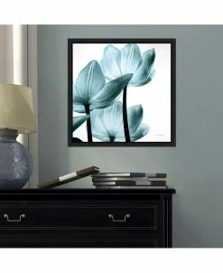 The bold contrast of cool tones on a stark white background provides a vibrant contemporary appeal for an office or entryway. Intricate details highlight the delicate flower petals, offering a subtle blend of romance, mystery and a visually dynamic style.