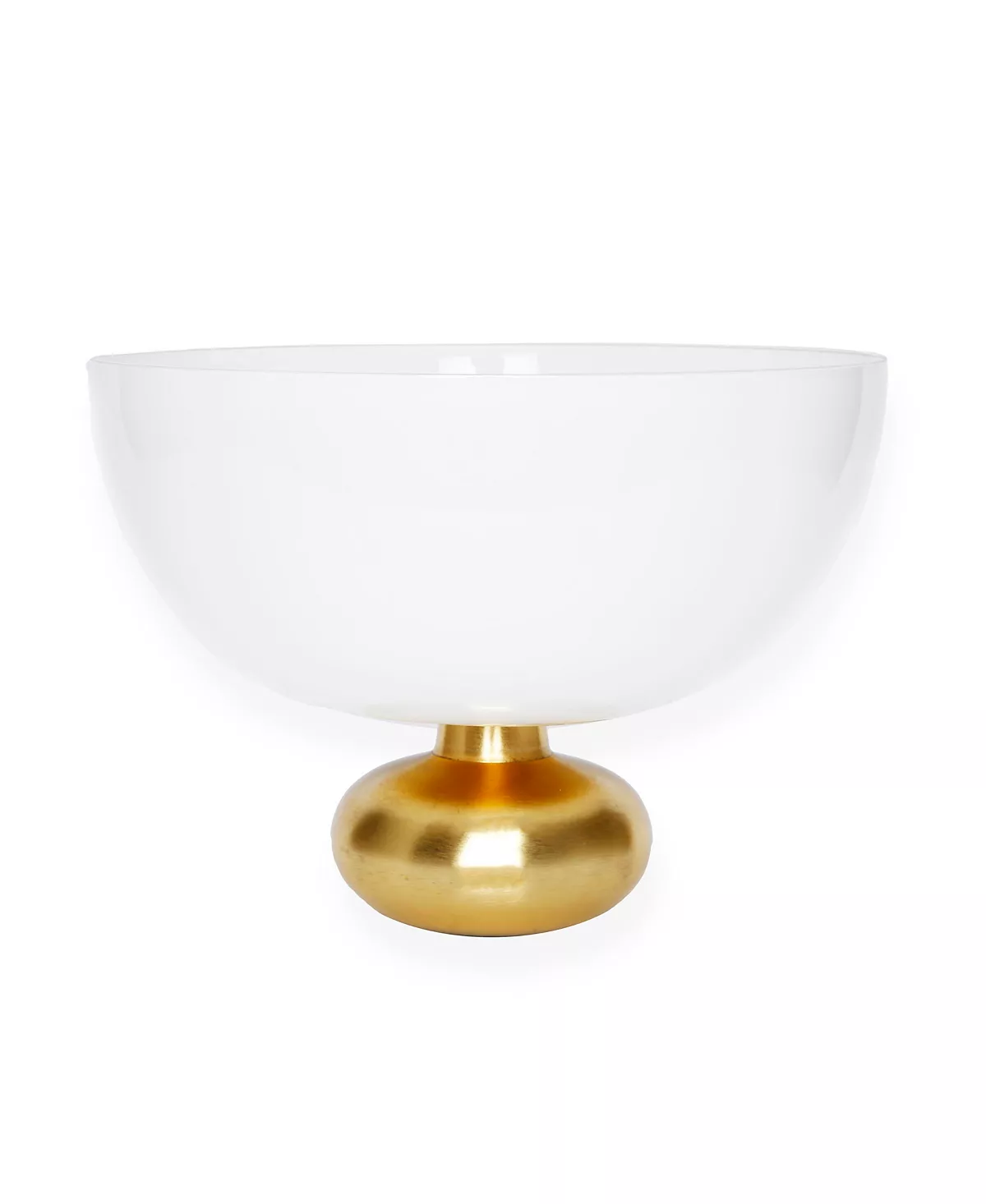 Adorn you table with this modern designed serving bowl. Footed on a base, the stark white color is accentuated with the lustrous gold. It is useful as a serving bowl, and can also be enjoyed as a centerpiece dish.