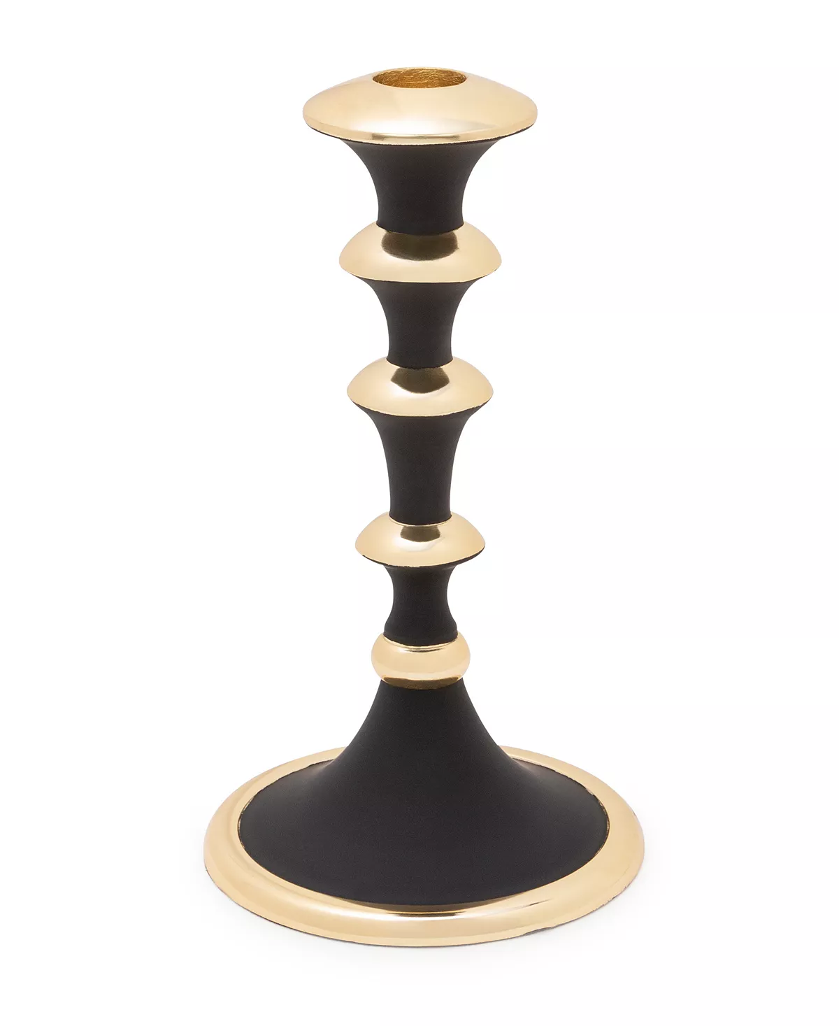A fusion of traditional design and contemporary sleekness define these beautiful black and gold-tone candlesticks. They are graceful and tall, while maintaining a modest decor. Useful for candle lighting on stately occasions, or just to add a mood of romance to your dinner table.