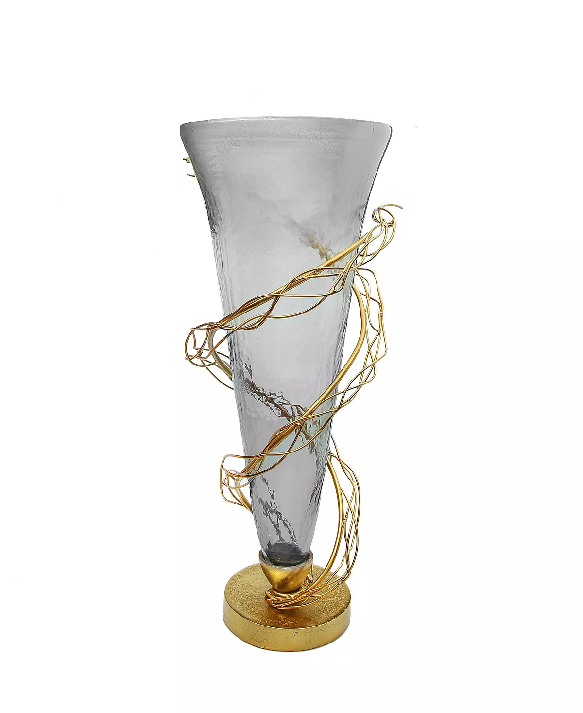 Furnish your house with decorative pieces that will make it into a home. This vase features a smoked finish and a tangled gold tone branch embracing it all around. It is ideal as a centerpiece vase and can also be placed by the entrance for a nice welcome.