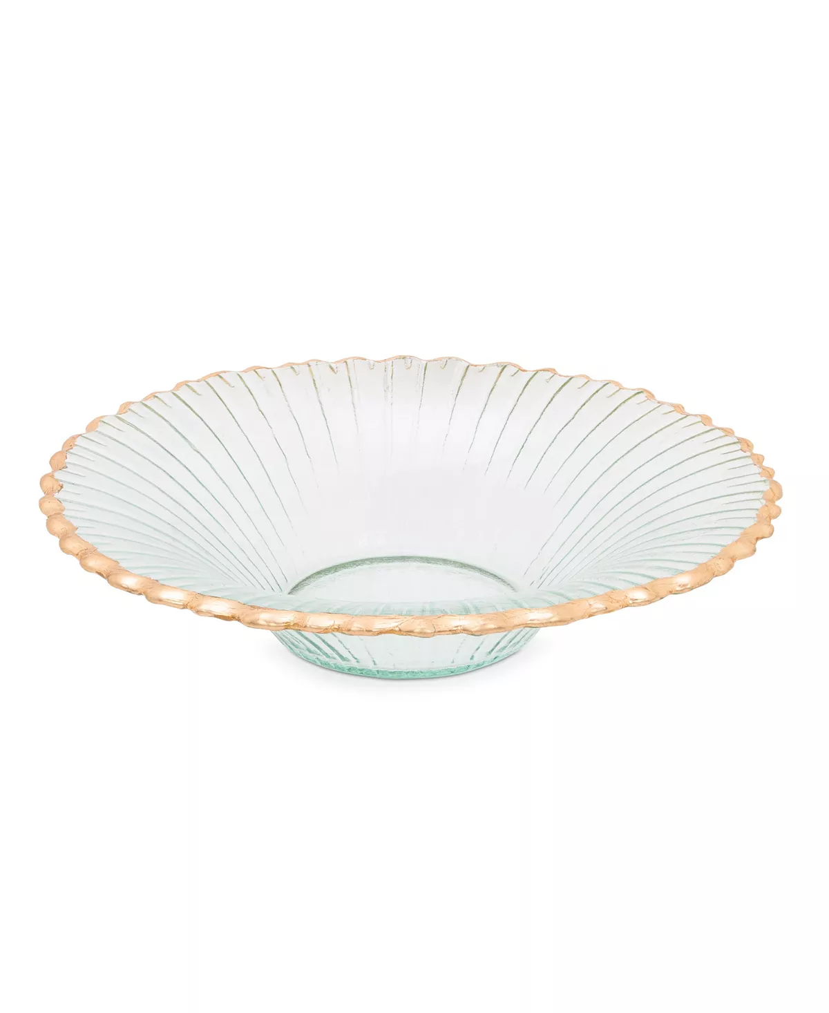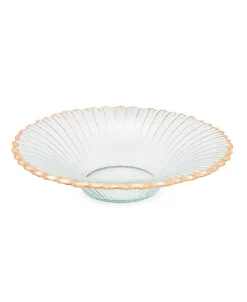 Enhance every occasion and celebration in your life with this magnificent glass bowl. It’s elegantly decorated with a ruffled design and gold-tone edge.