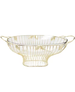This magnificent glass bowl brings an extra aura to every display setting. It is decorated with some glossy gold-tone leafs beautifying the glass bowl . This bowl can be used as a serving bowl of pasta or salad at any occasion or a centerpiece to decorate your living area.