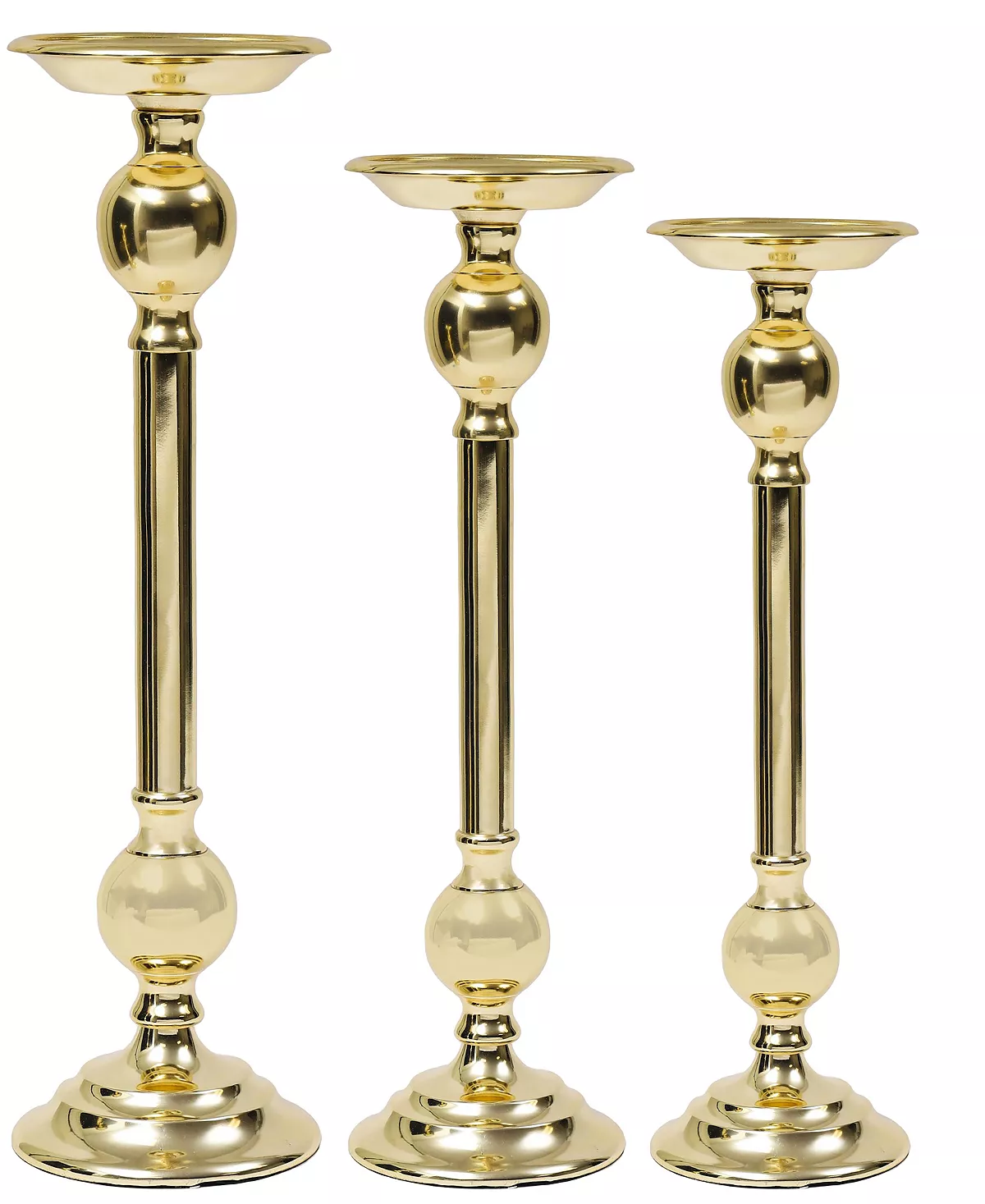 The fine design tall candlestick combine elegance with modern. Place them on top of a fire place for a fun twist on home widgets. Offering three varied heights, these candlesticks are attractive table toppers.