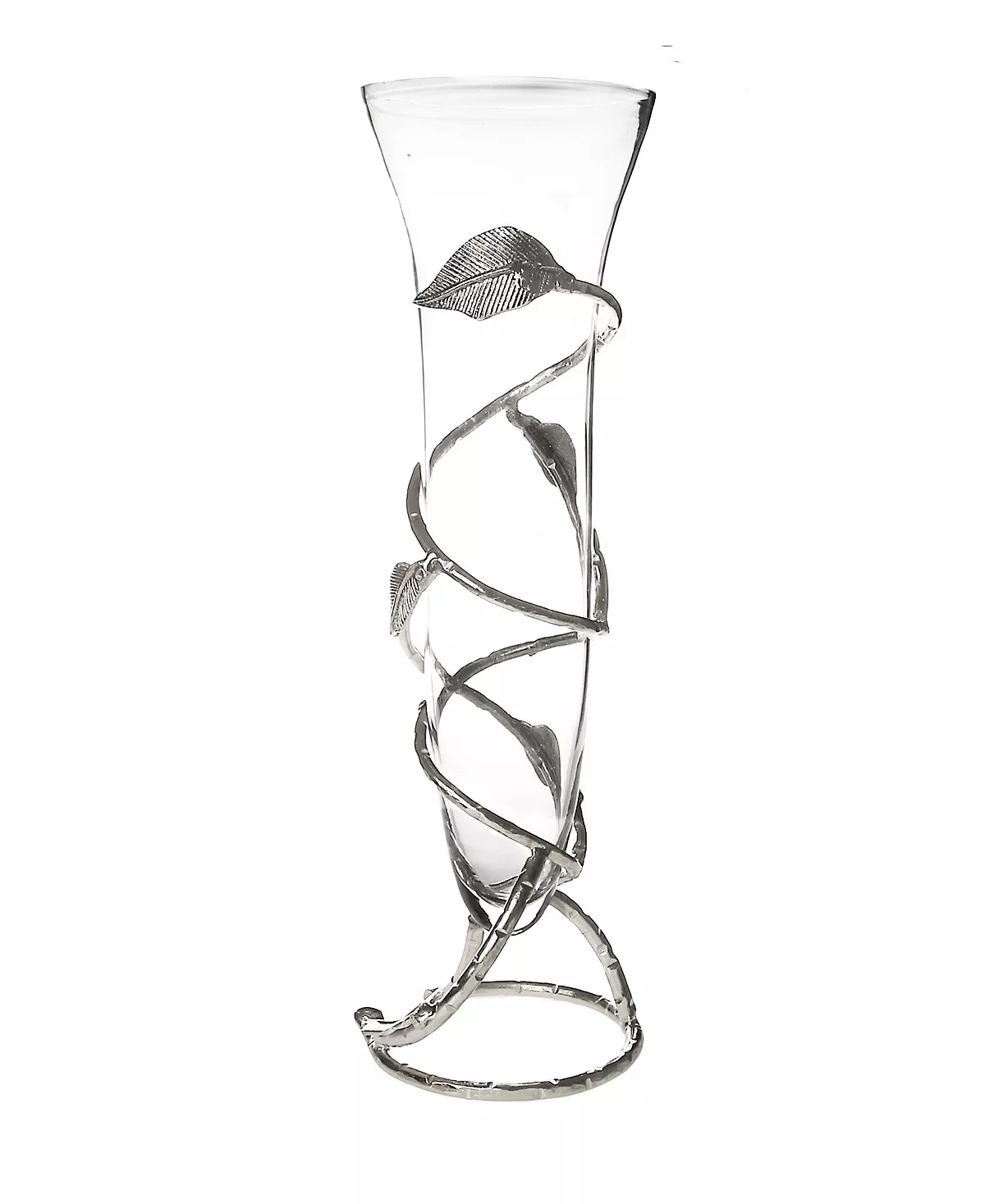 Manufactured from quality glass material, this vase is enhanced by its nickel leaf design. This hand-crafted piece features an intricately detailed leaf design around its body. Dress up fresh flowers in this beatific piece.Â