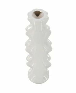 - Each vase has an opaque glossy alabaster white glaze finish with unique silhouettes and textures