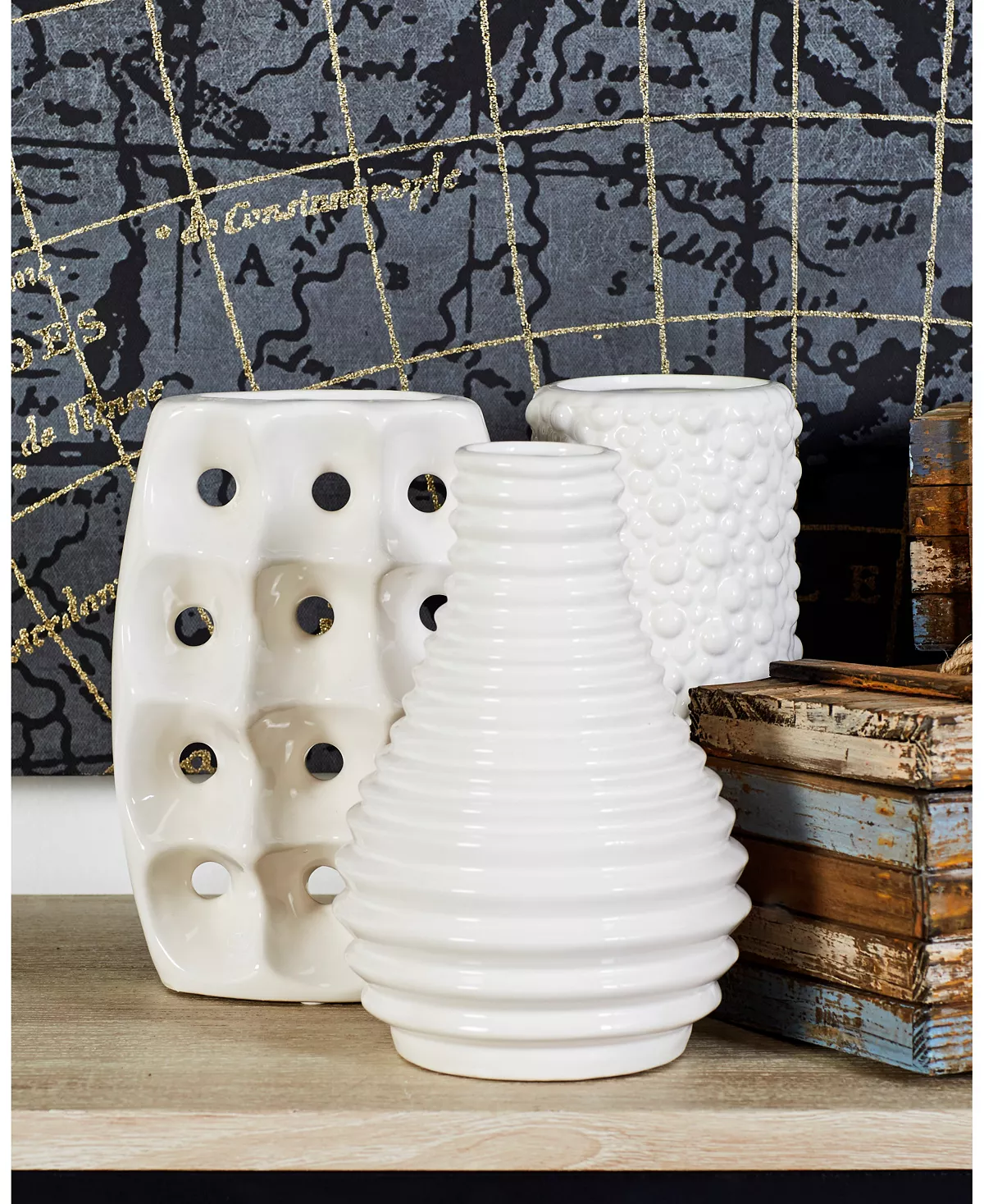 - These white vase set feature unique shaped and textural exterior for easy handle and grip