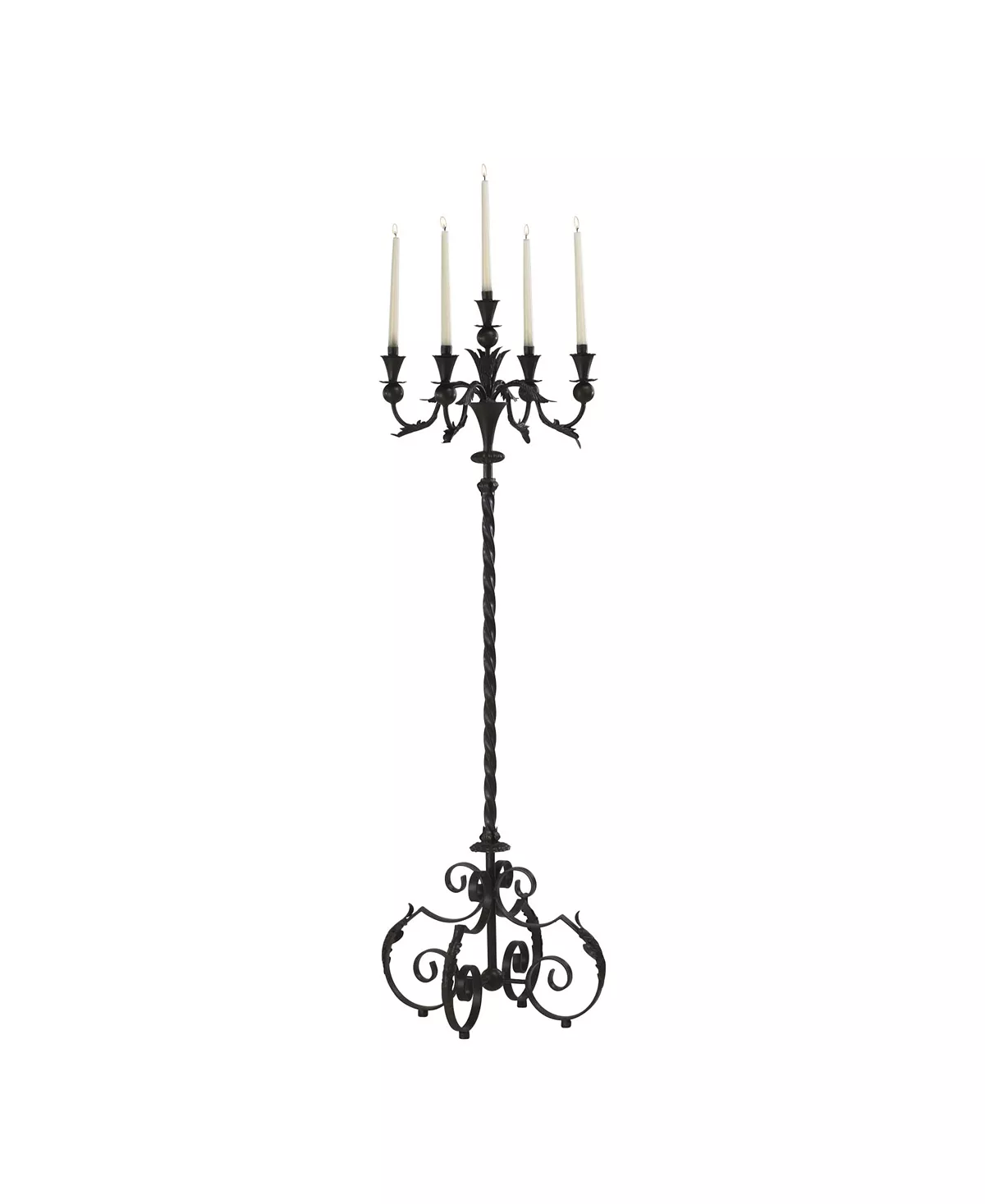 Inspire a magical meal with this beautiful, large antique rust floor candelabra. The romantic gothic-inspired silhouette and details cast a warm glow.