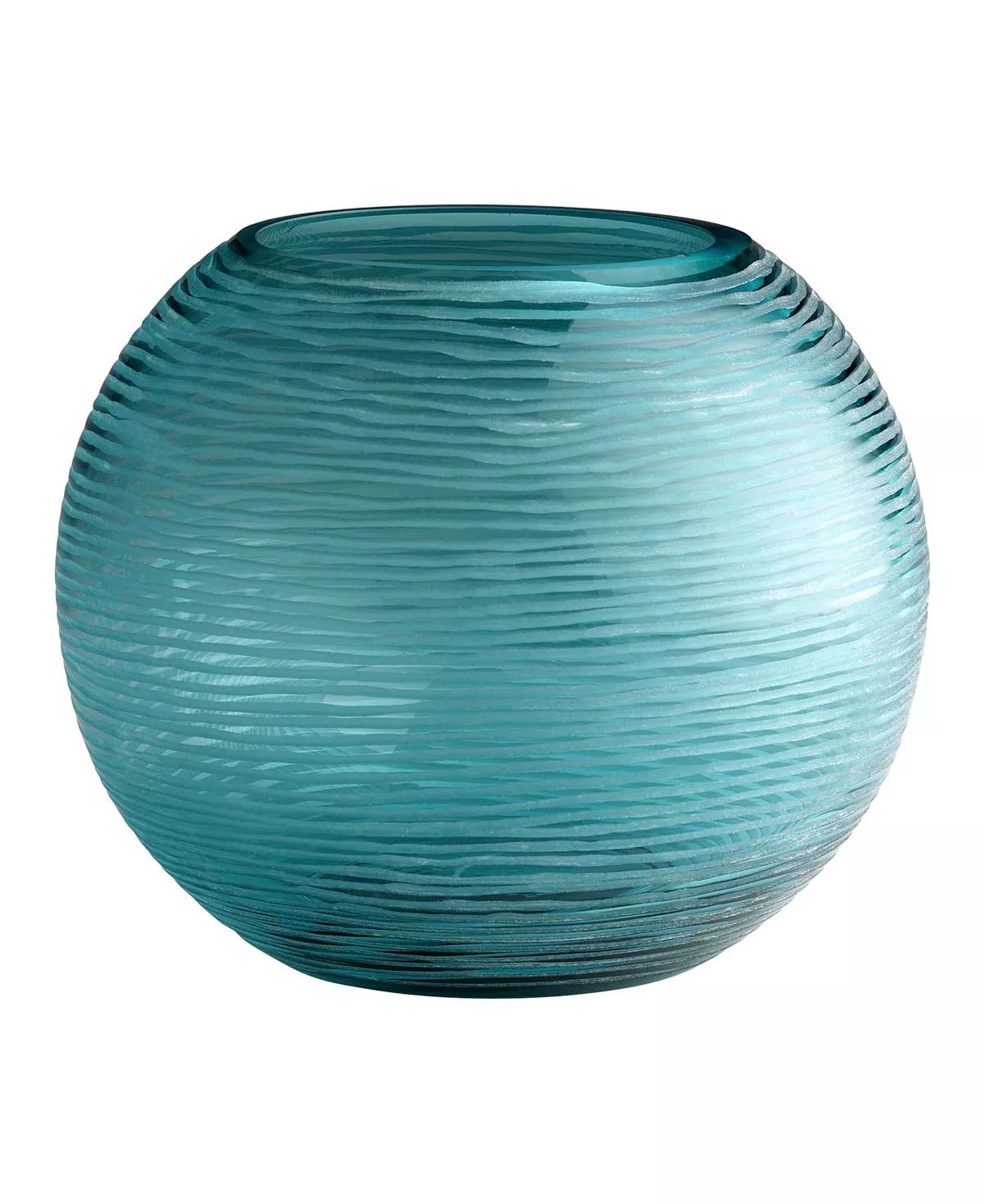 Add an exotic touch to your living room or entryway with this contemporary aqua glass vase. Details such as the etched glass oozes style while reflecting light in multiple directions.