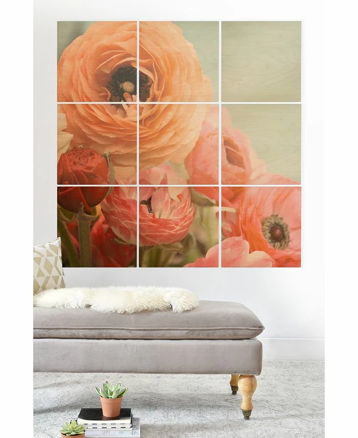 Bring beauty and warmth to your living space with artist Bree Madden’s Spring Ranunculus wall mural by Deny Designs, printed on nine separate wood panels. Hang them together in a grid to create a distinctive wall art piece for a living room, den or bedroom.