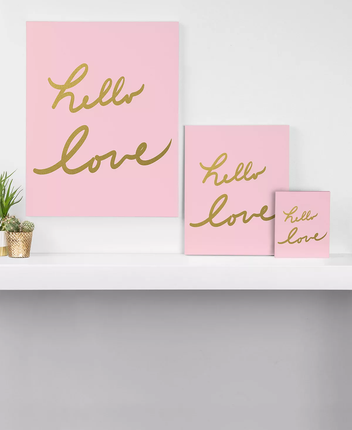 Brighten your walls in a fun way that reflects a romantic personality with the contrasting vibrant-tones of the Hello Love Pink Art Canvas by artist Lisa Argyropoulos from Deny Designs.