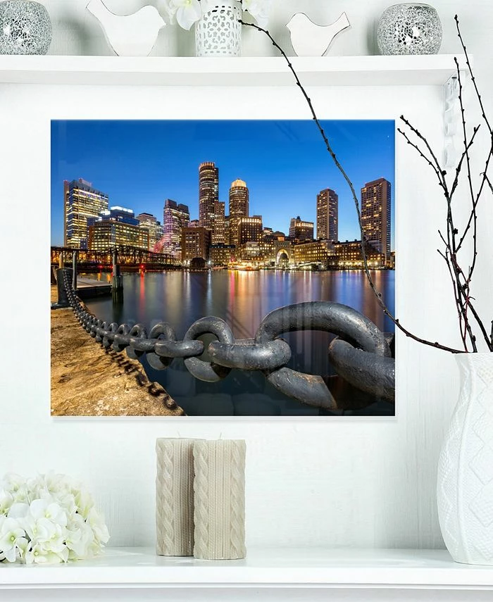 Design Art Art ‘Boston Skyline At Dusk’ Cityscape Photo Metal Wall Art – 20 X 12