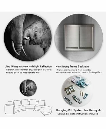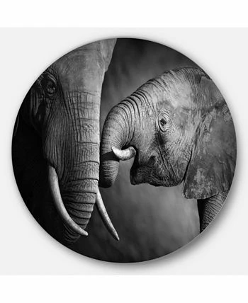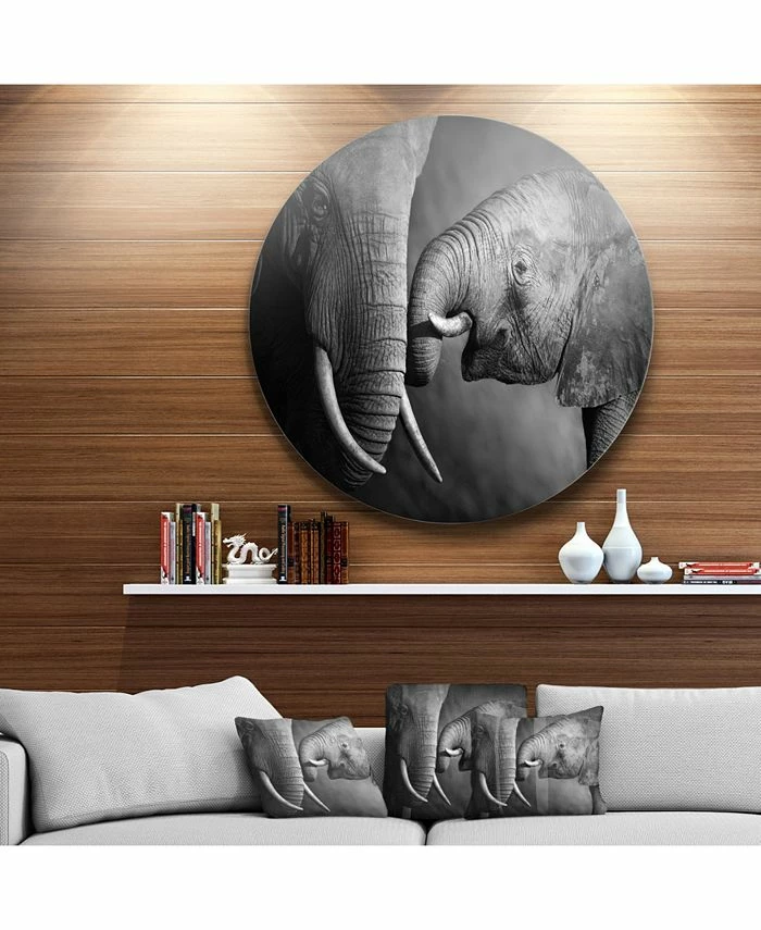 Design Art Art ‘Elephants Showing Affection’ Ultra Vibrant Abstract Metal Circle Wall Art – 36 X 36