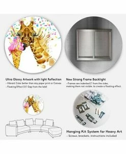 Design Art Art ‘Giraffe Eating Ice Cream Watercolor’ Disc Contemporary Animal Metal Circle Wall Decor – 36 X 36