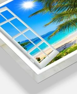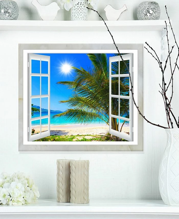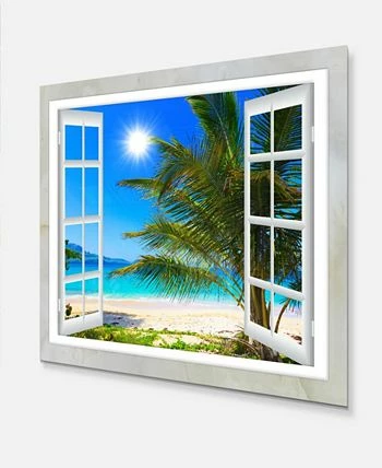 Design Art Art ‘Window Open To Beach With Palm’ Extra Large Seashore Metal Wall Art – 20 X 12