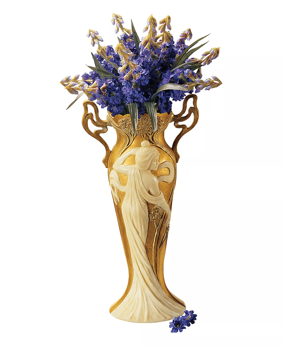 Melding sculpture and function, this classically shaped vase literally blossoms with a graceful maiden fraught with all the elements of organic art nouveau style. Our bas-relief replica, cast directly from a late 19th century original.