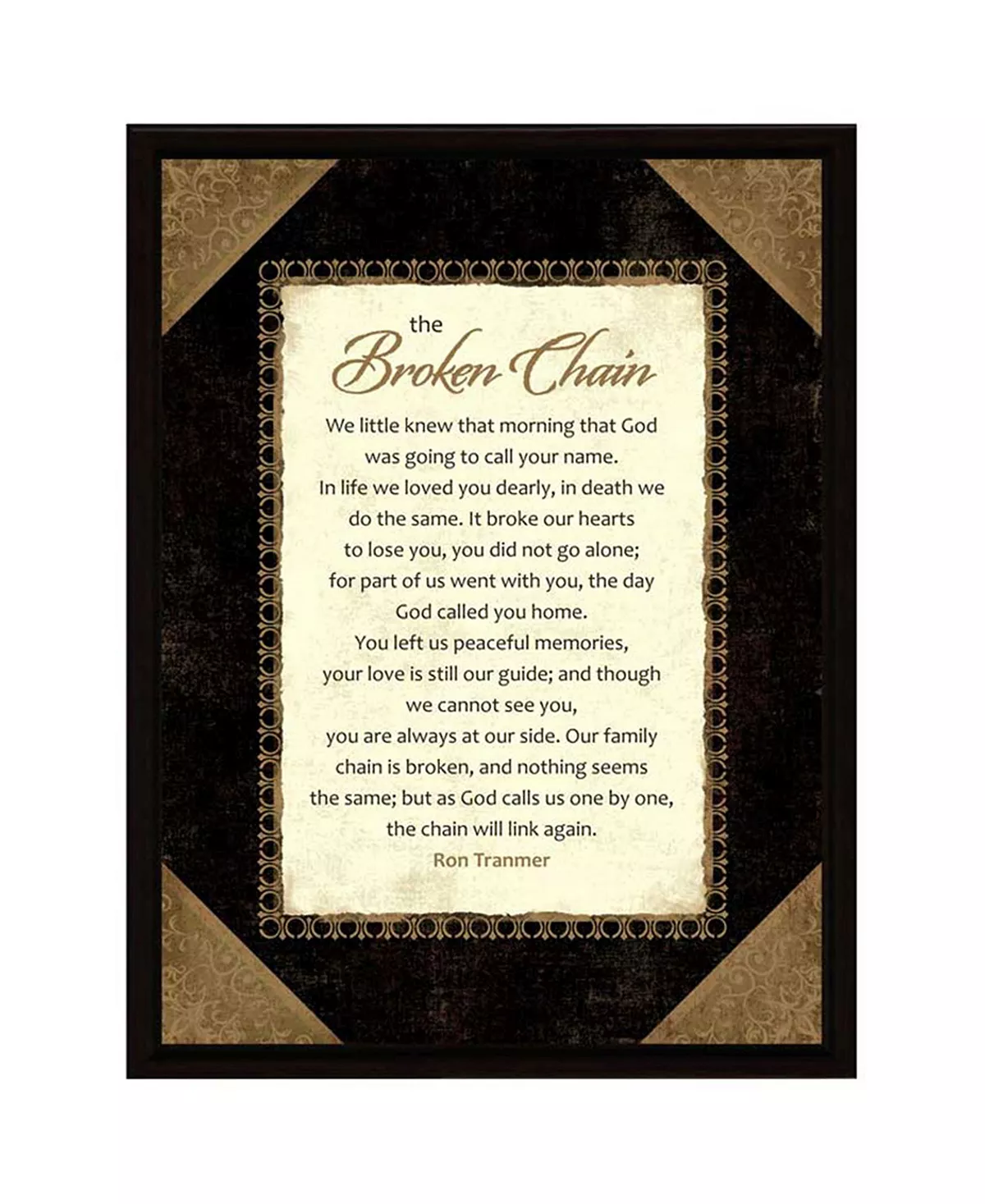 Framed plaque comes individually boxed and is easel backed or ready for hanging.