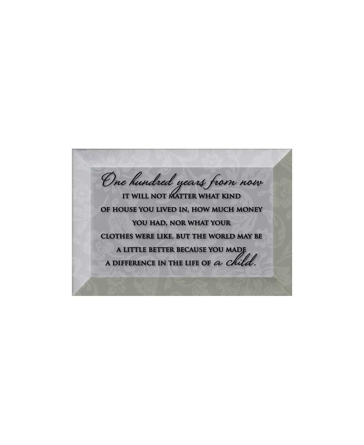 Beveled glass plaque comes easel backed and individually boxed. Silk-screened designs and verses create a shadowing affect on each piece.