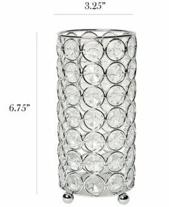 This candle holder has K5 crystals throughout. You can use this piece as a candle holder, to organize your make-up, brushes, pens, or supplies of choice. We do not recommend use of real fire or flame candles as it will cause metal to get very hot.