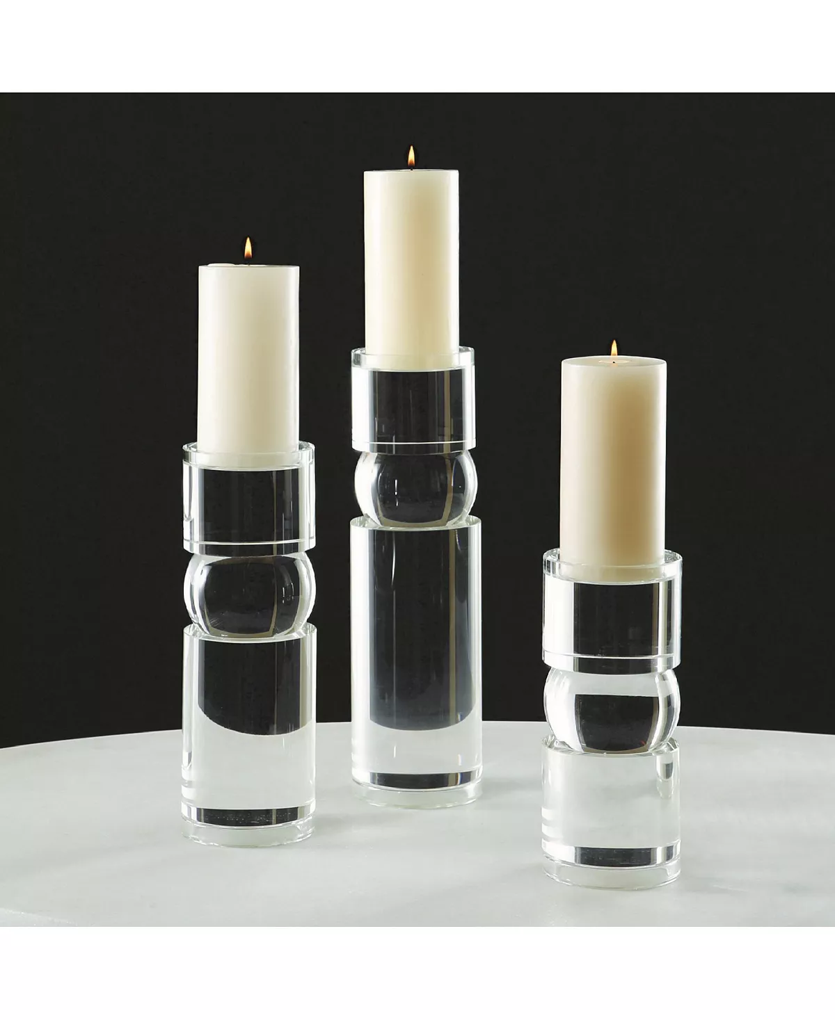 Perfectly clear glass has been shaped to form our bipolar crystal candleholder. A round ball shape sits between two cylindrical pieces. Top with a pillar candle to create a warm glow.