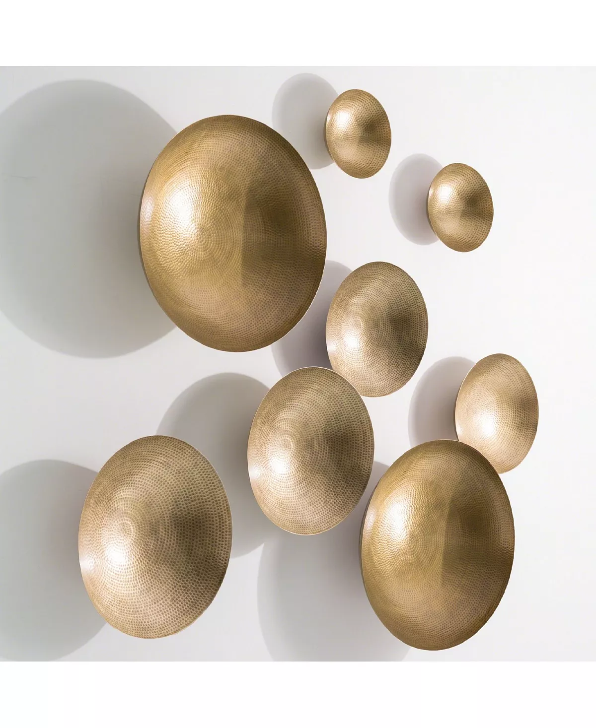 Hand-hammered brass wall decor complete with threaded hanging mechanism. The wall plate mounts with two screws. Antique brass finish. Also available in antique copper and antique nickel finishes.