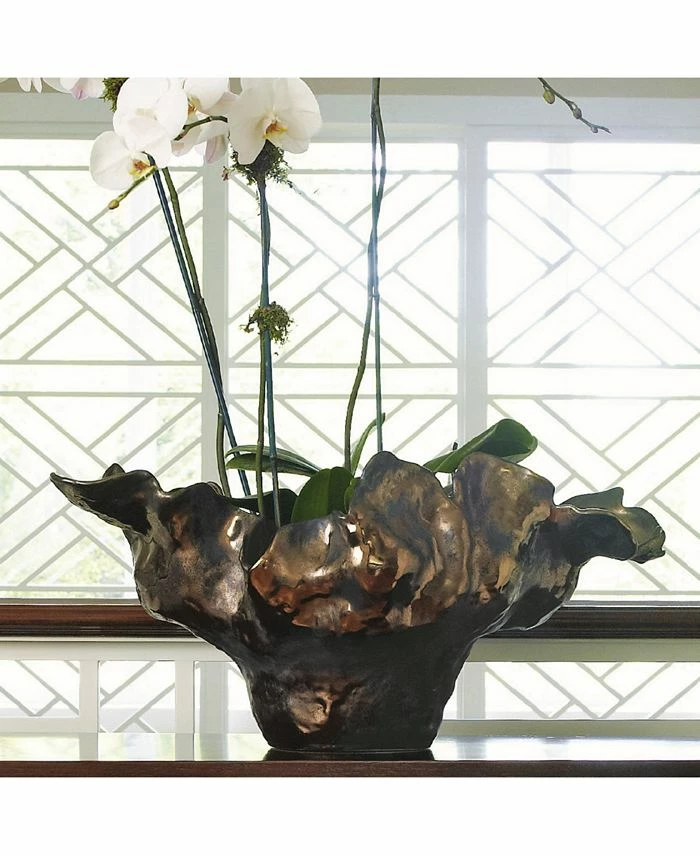 The original of this grand statement piece was created by a Portuguese artist whose work first caught our designers’ eyes at an art fair in Portugal. It took years of collaboration to arrive at this design that can be consistently produced multiple pieces are cast, bound together, and fired. Then it receives a reactive glaze.