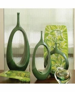 Layer our open oval ring vase anywhere you need bold pop of color. The lithe silhouette makes grouping them easy and the lush shade of green is certainly eye-catching.