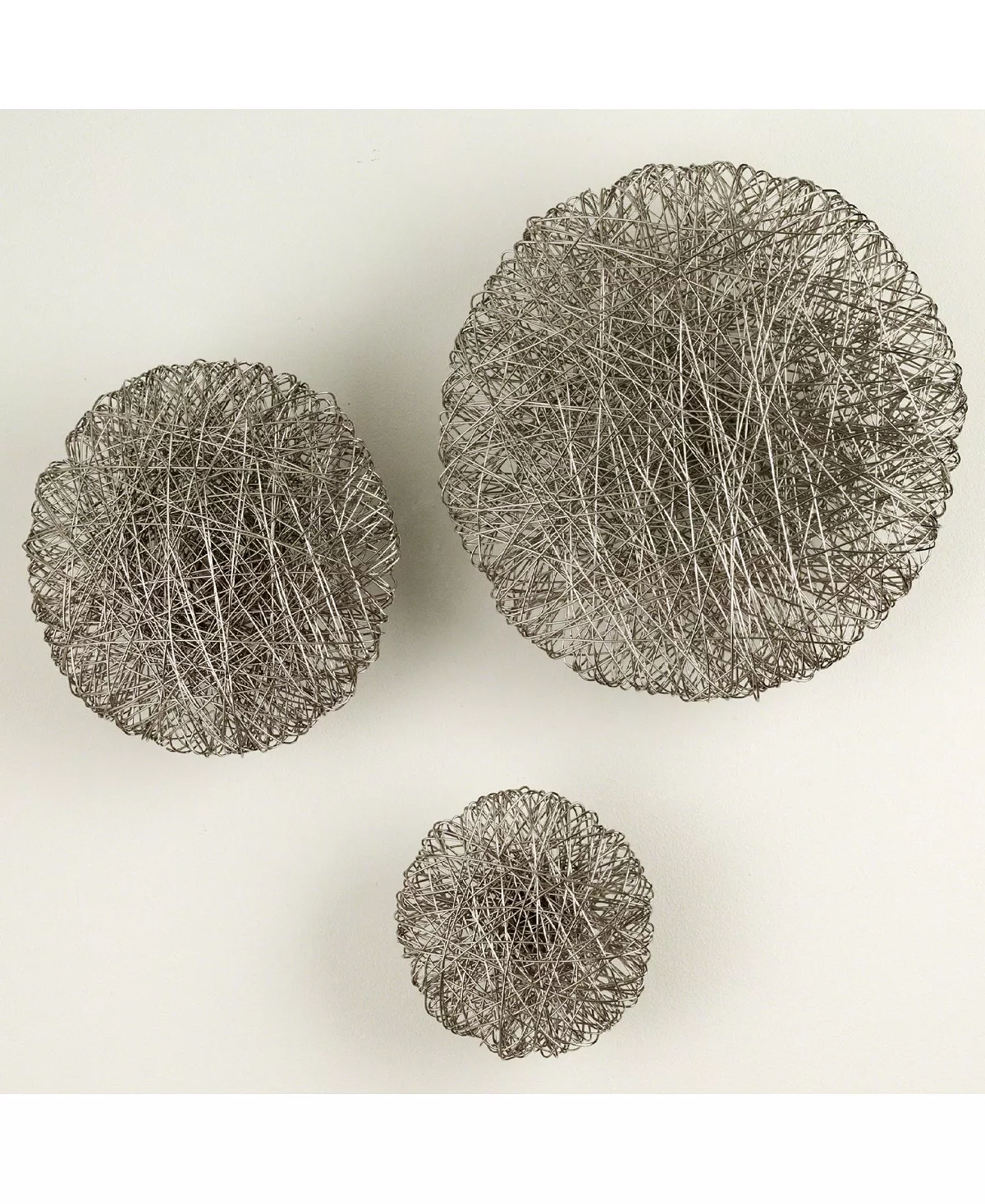 Hand-wrapped, chrome plated iron wire. These beautifully engineered pieces are inspired by modern jewelry. There is a hidden disc with security hardware for mounting to a wall.