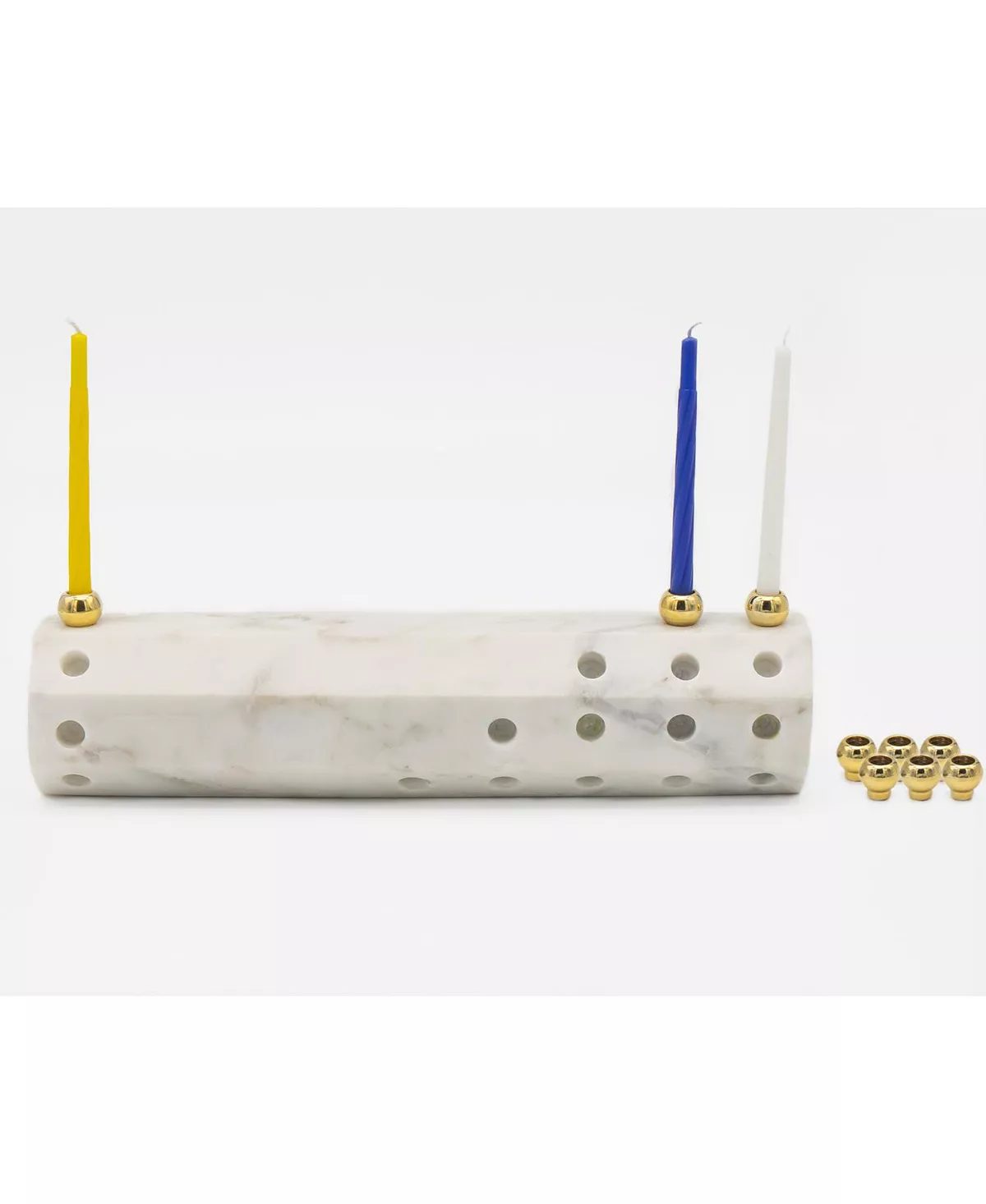 Marble Octagonal Menorah witrh Brass Cups to hold candles.
