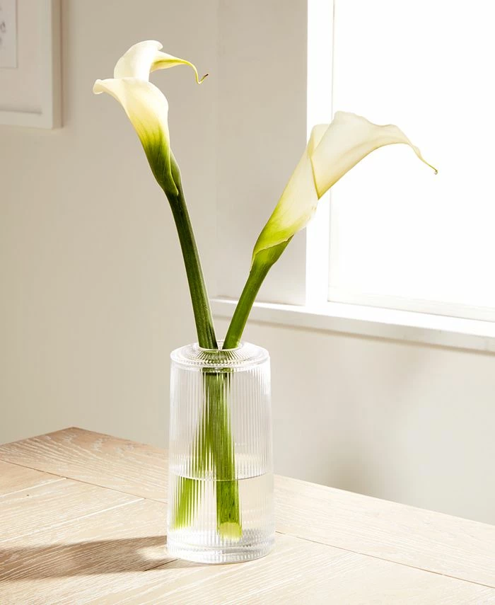 Showcasing a classic ribbed silhouette, Hotel Collection’s lidded glass vase creates a stunning display with its versatile design. Leave the lid on for a few stems; remove it to fit a larger arrangement.