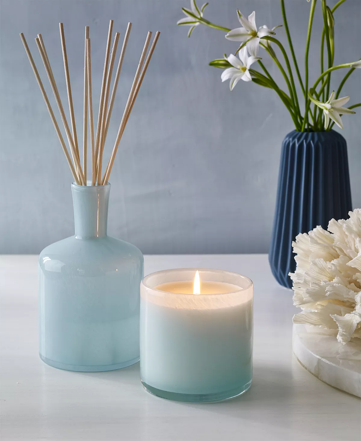 The gentle essence of marine water and crisp sea air abound. Salty breezes carry sea jasmine, rose, cyclamen and a hint of bergamot. Fresh rhubarb, vetiver and sea moss create the textured mood of a sandy shore.