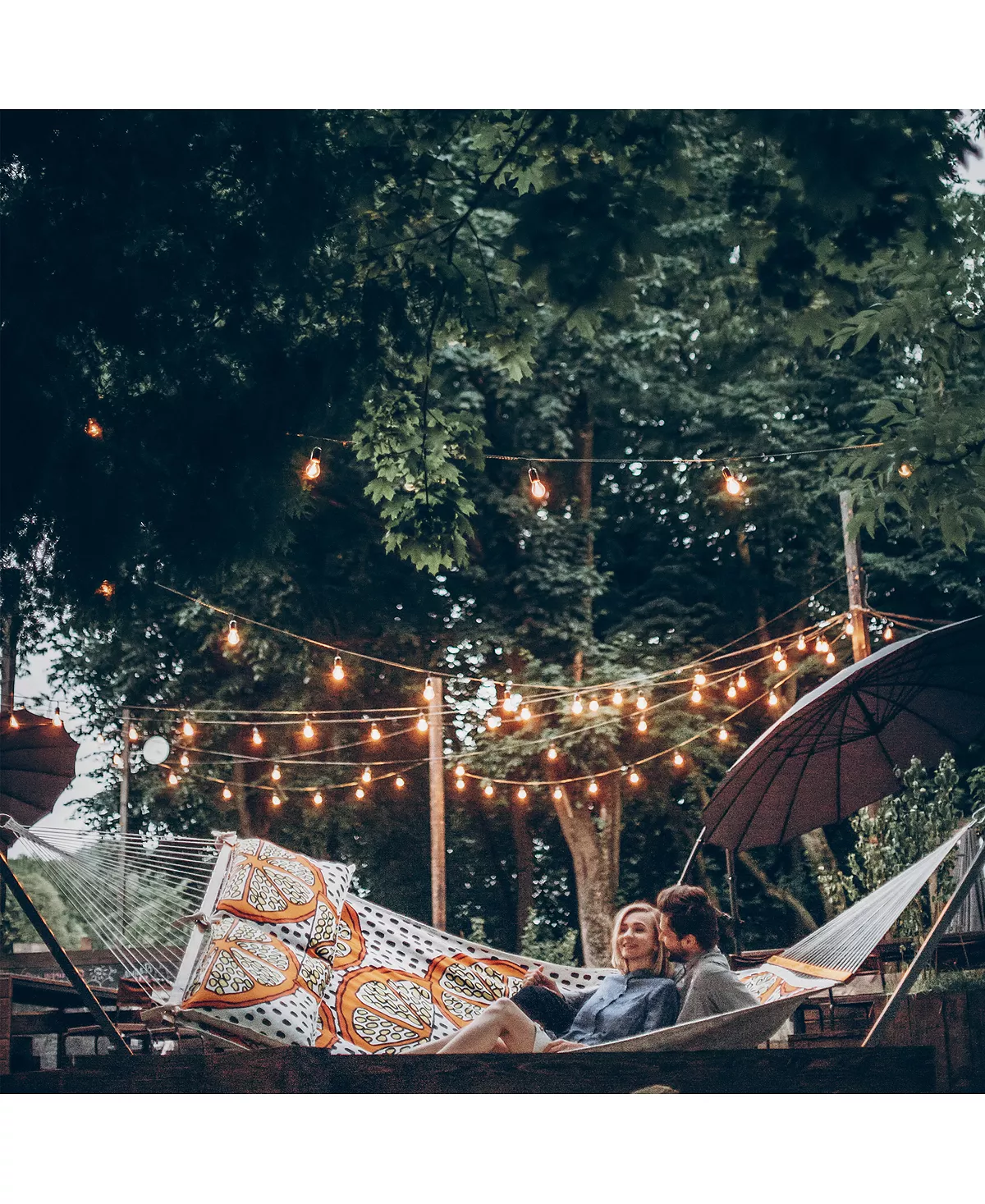 Bring an enchanting atmosphere with commercial grade Edison style string lights. This glowing strand features 12 C9 – 7 watt Edison bulbs on a 216″ UL listed black cord. Use these string lights for your event or to add a festive feel to your backyard patio.