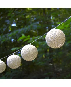 These white cotton wrapped LED globe lights are the perfect accent to your outdoor home decor. Use them to highlight the look of your yard from dusk ’til dawn. Ambient decorative lighting for patios, decks, pool side, or under umbrellas.