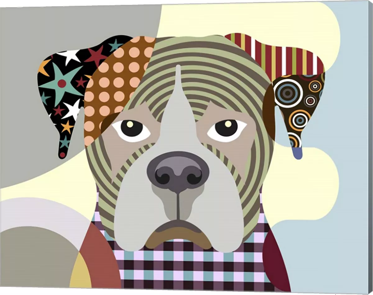 Boxer Dog by Lanre Adefioye is a high quality piece of canvas artwork. The finished size of this piece is 20″ X 16″, and it has a depth 0.75″. There is a UV protective coating over the entire image, and it is ready to hang on your wall with no hardware required. Hand made in the USA. 100% Satisfaction Guaranteed.