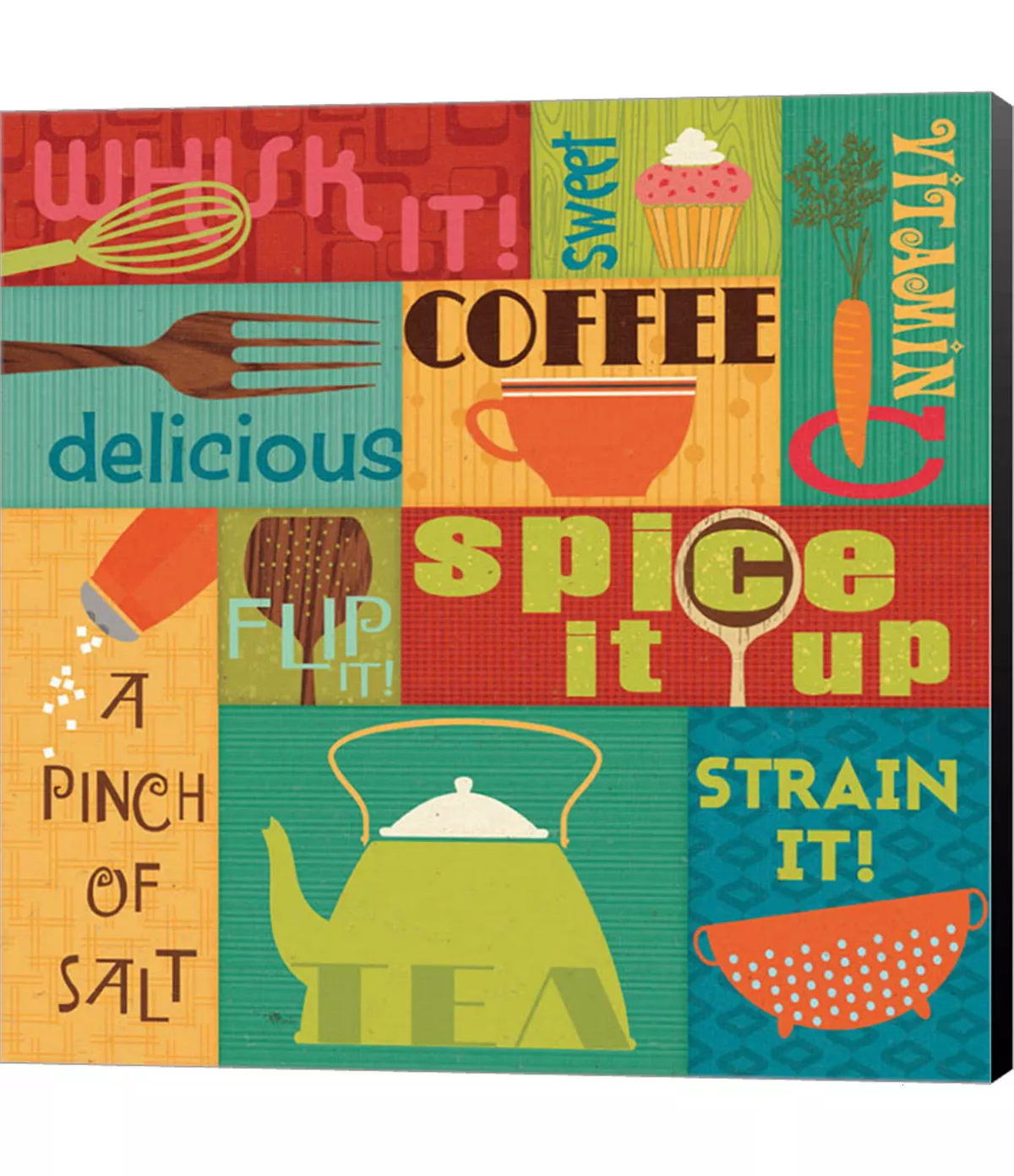 Kitchen It! I by Pela Studio is a high quality piece of canvas artwork. The finished size of this piece is 12″ X 12″, and it has a depth 1.5″ with black painted sides. There is a UV protective coating over the entire image, and it is ready to hang on your wall with no hardware required. 100% Satisfaction Guaranteed.