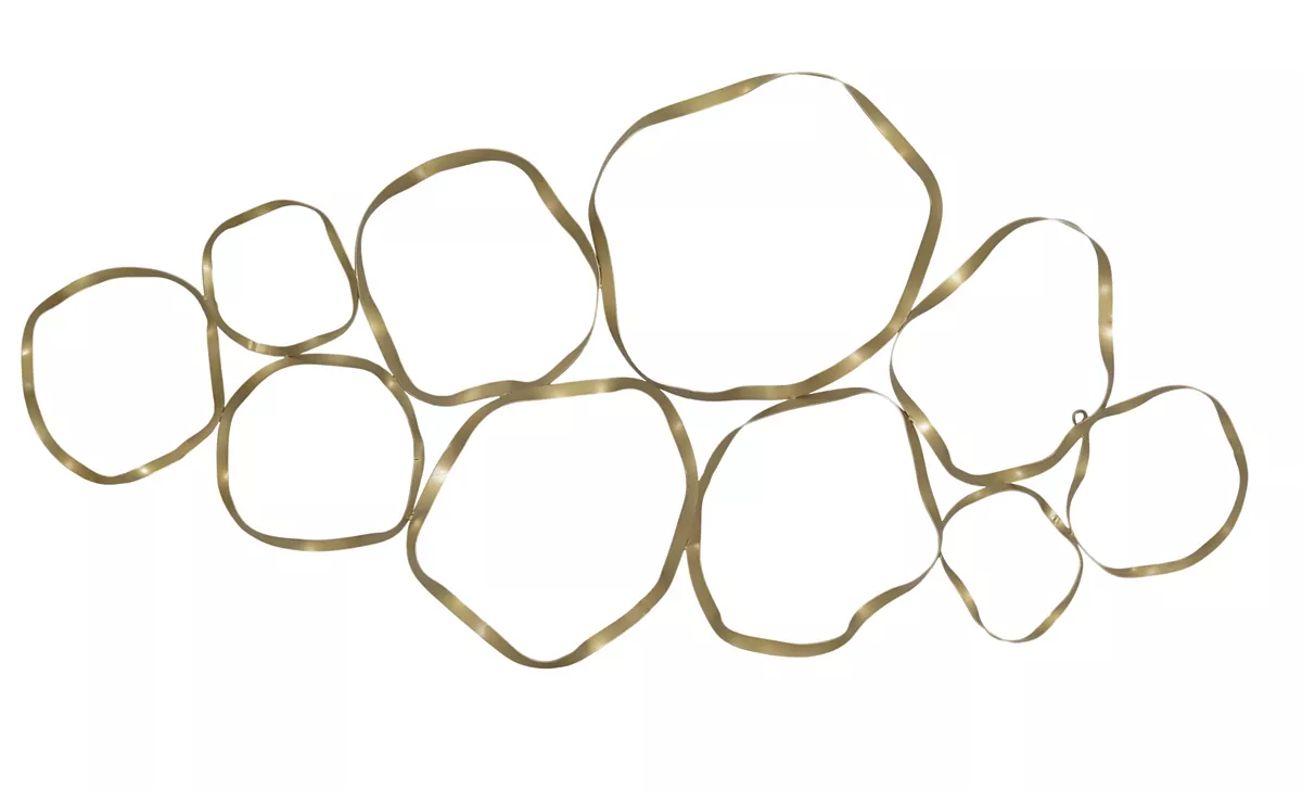 Get creative with your walls! Instead of adding another print, why not an abstract piece of art like the Euclid? Shimmering gold circles that let you decorate all of your walls without it like an art gallery. Contemporary Modern Style.
