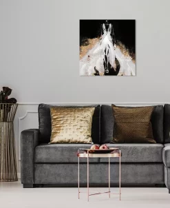 - Artisans individually hand-stretch and gallery wrap each canvas over a solid wood frame