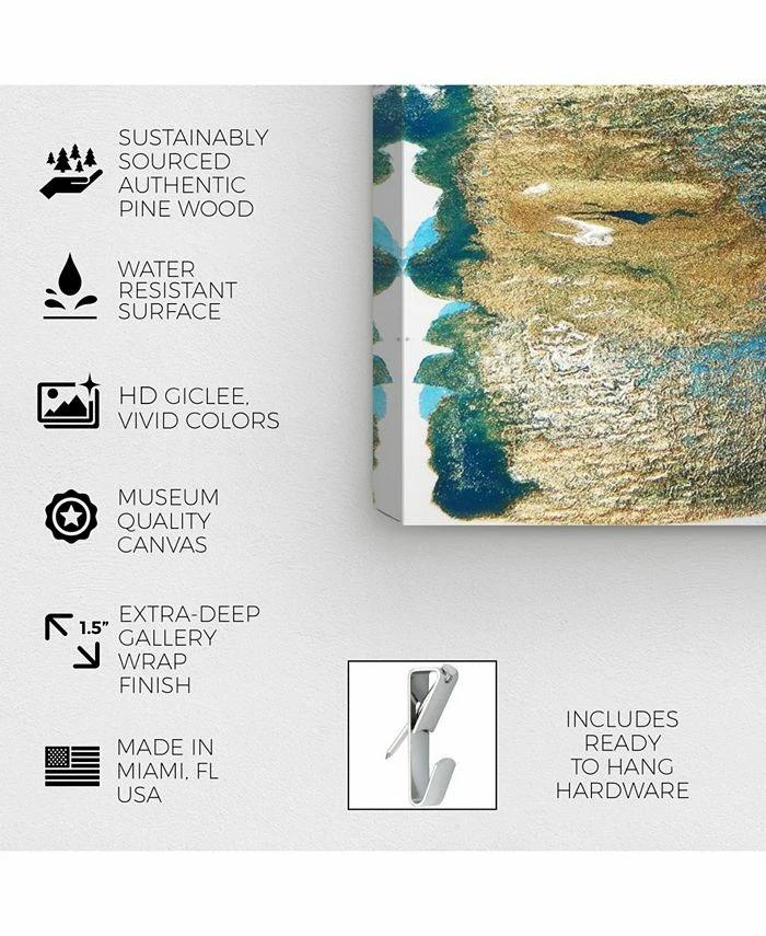 - Artisans individually hand-stretch and gallery wrap each canvas over a sustainable solid wood frame