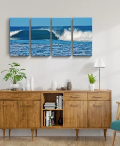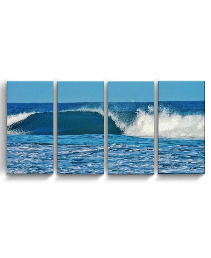 The ocean motion 4 piece canvas art set depicts an open sea with rough breaking waves, the white foam then settling into calmness. Bring the beauty of nature to your decor with this stunning wall art.