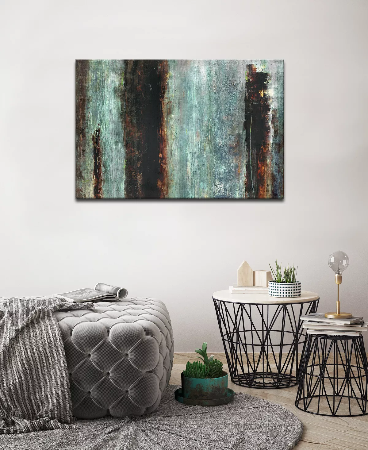 The textured interplay of hazy shades and deep rich tones in the Ready2HangArt ‘Smash III’ oversized canvas wall decor print form a stunning neutral palette.