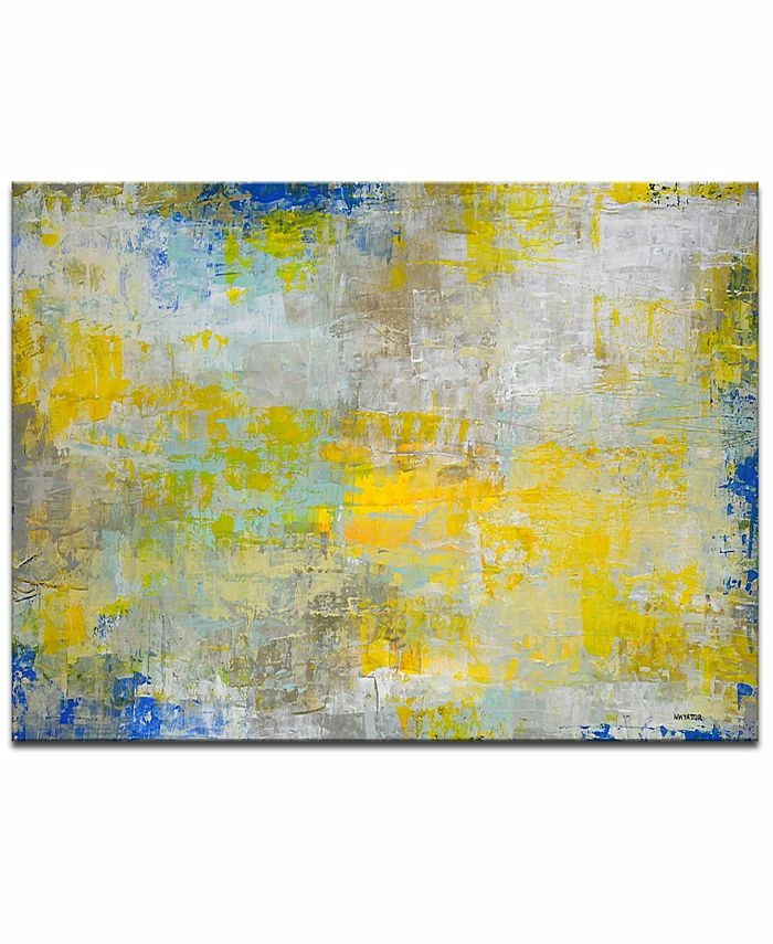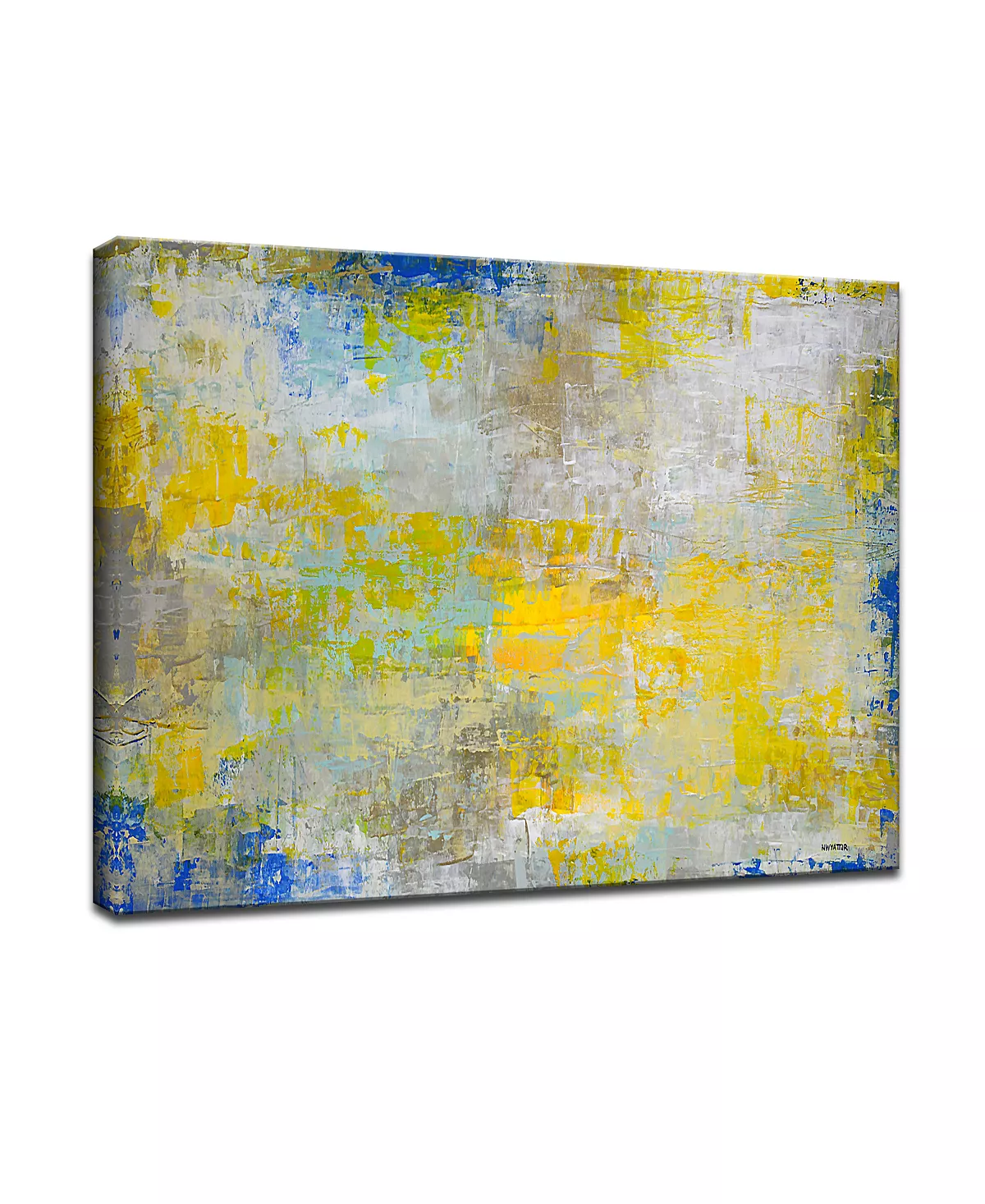 This canvas wall decor features a colorful pallet of yellow, blue, white, and green all battling on one panel. This wall decor adds multiple emotions on one canvas.