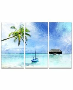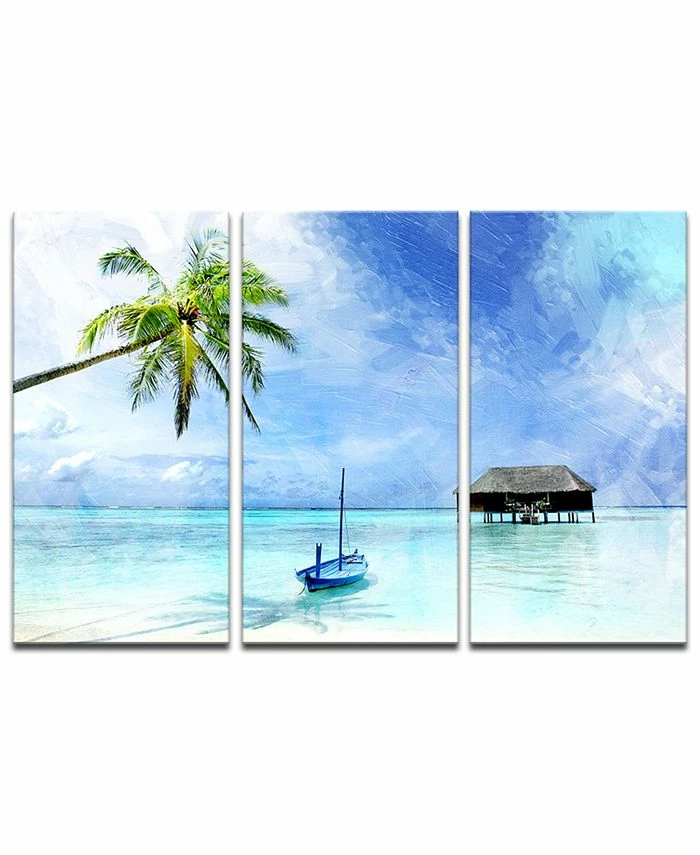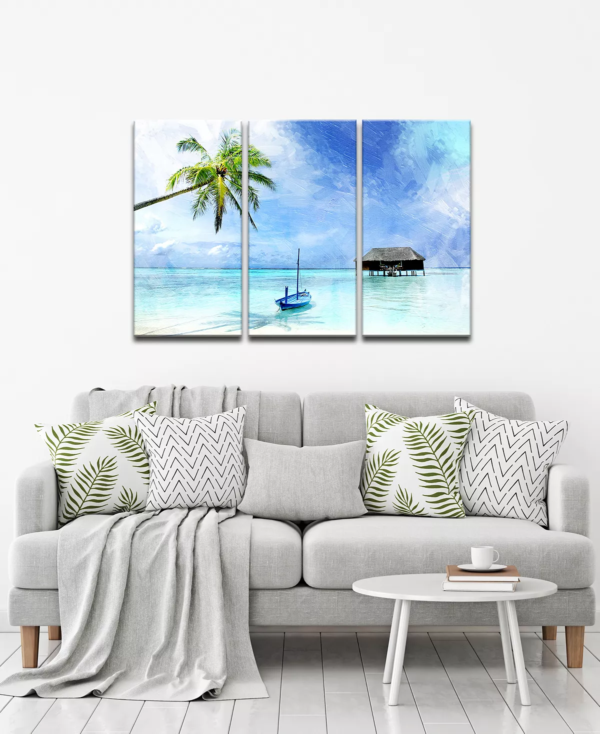 Escape to the islands with the refreshing blue and turquoise hues of Ready2HangArt’s Tropical print spread across three canvas panels.